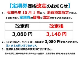 令和元年10月1日から、消費税率改定に伴い、下記のとおり 長崎市築町二輪車等駐車場の定期券の価格を改定させていた だきます。 【定期券価格改定のお知らせ】POP ☟ クリックすると拡大してご覧いただけます